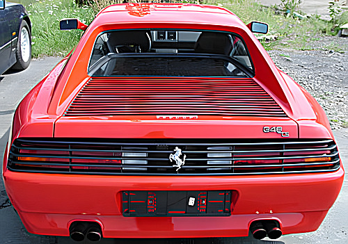 Die schwarzen Leisten über den Heck- leuchten sind noch vom Ferrari Testarossa von 1984 übernommen.