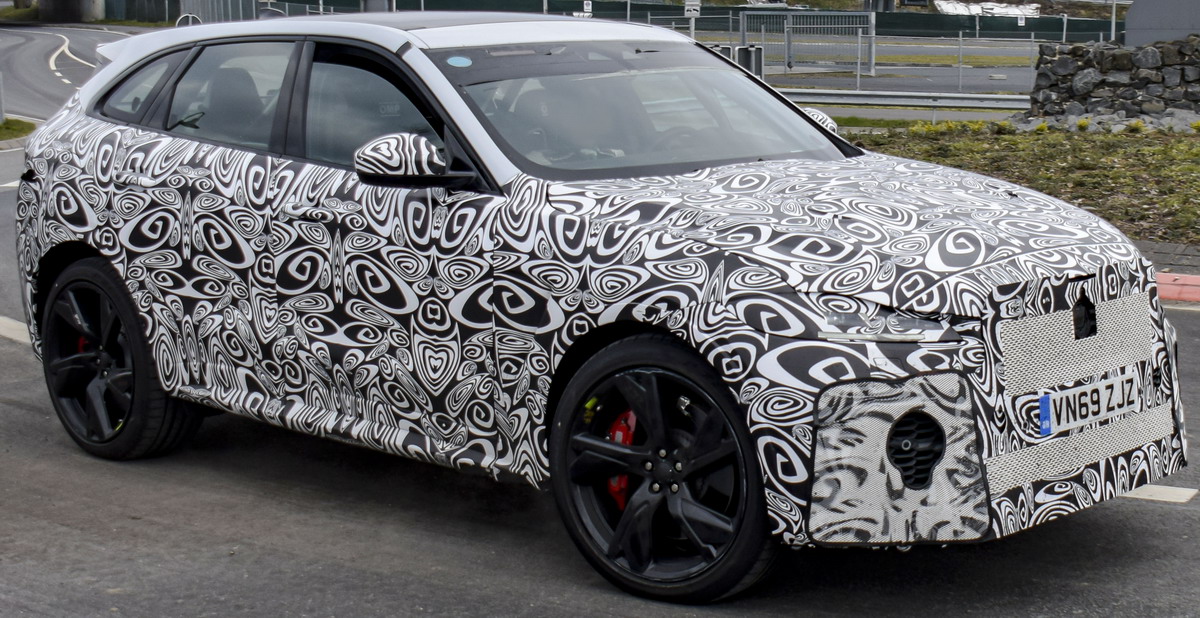 In Kombination mit den schwarzen Fensterrahmen weiß der Kenner sofort, dass hier der kommende F-Pace SVR vorbeirollt.