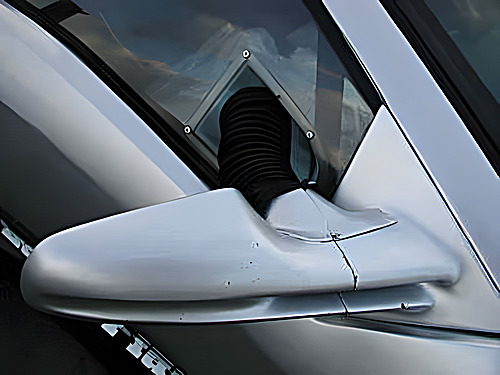 In die Außenspiegel eingearbeitete Luft- kanäle fördern frischen Fahrtwind durch Schläuche in den Innenraum.