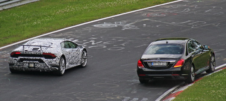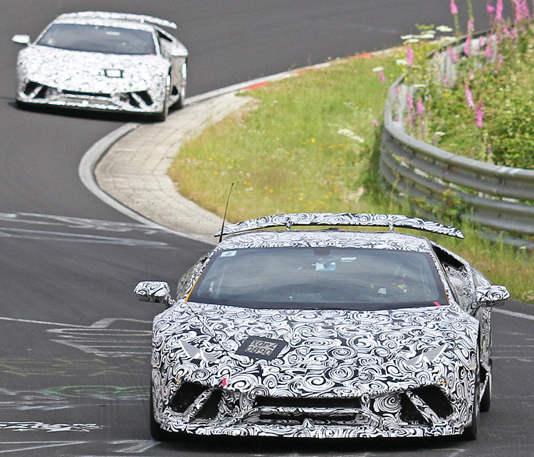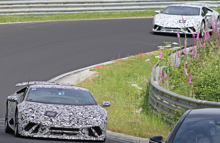 Es waren zwei Erlkönige von Lamborghini, die im Tandemflug die Rennstrecke erschütterten.