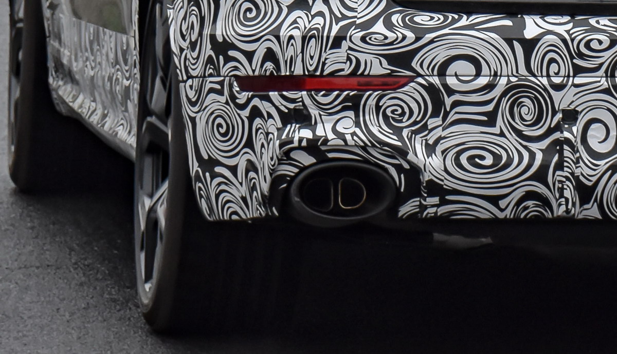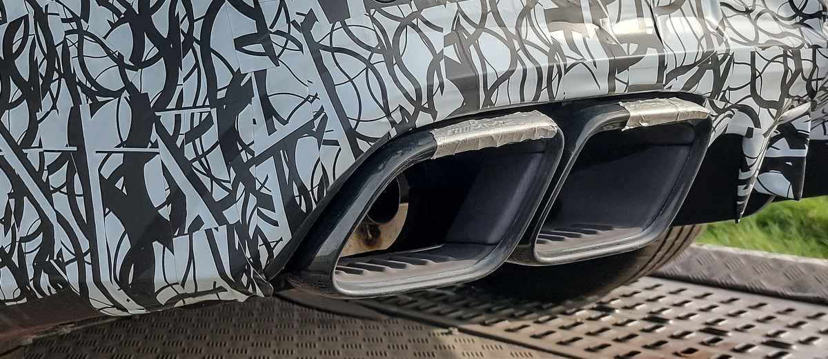 Bei diesem Mercedes AMG C63s Erlkönig im Herbst 2021 kamen die Abgase auf jeder Seite aus einer Tröte.