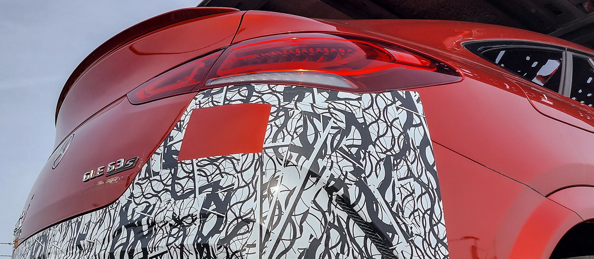 Die AMG-Schriftzüge auf den Auspuffblenden mit Tape so zu überkleben, dass diese trotzdem problemlos lesbar bleiben, ist irgendwie seltsam. Aber auch an anderen Stellen wurde diese ganz spezielle Tarnung eingesetzt