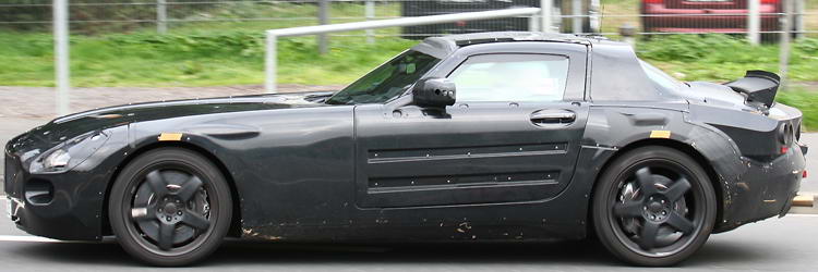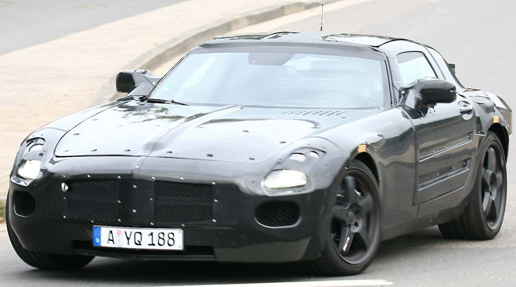 Unter der Tarnkappe versteckt sich ein AMG Flügeltürer, der 2010 vorgestellt werden soll.