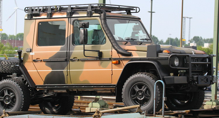 Auch von dieser besonderen G-Klasse waren zwei Exemplare im Mai 2014 auf Waggons im Bremerhavener Hafen angeliefert worden.