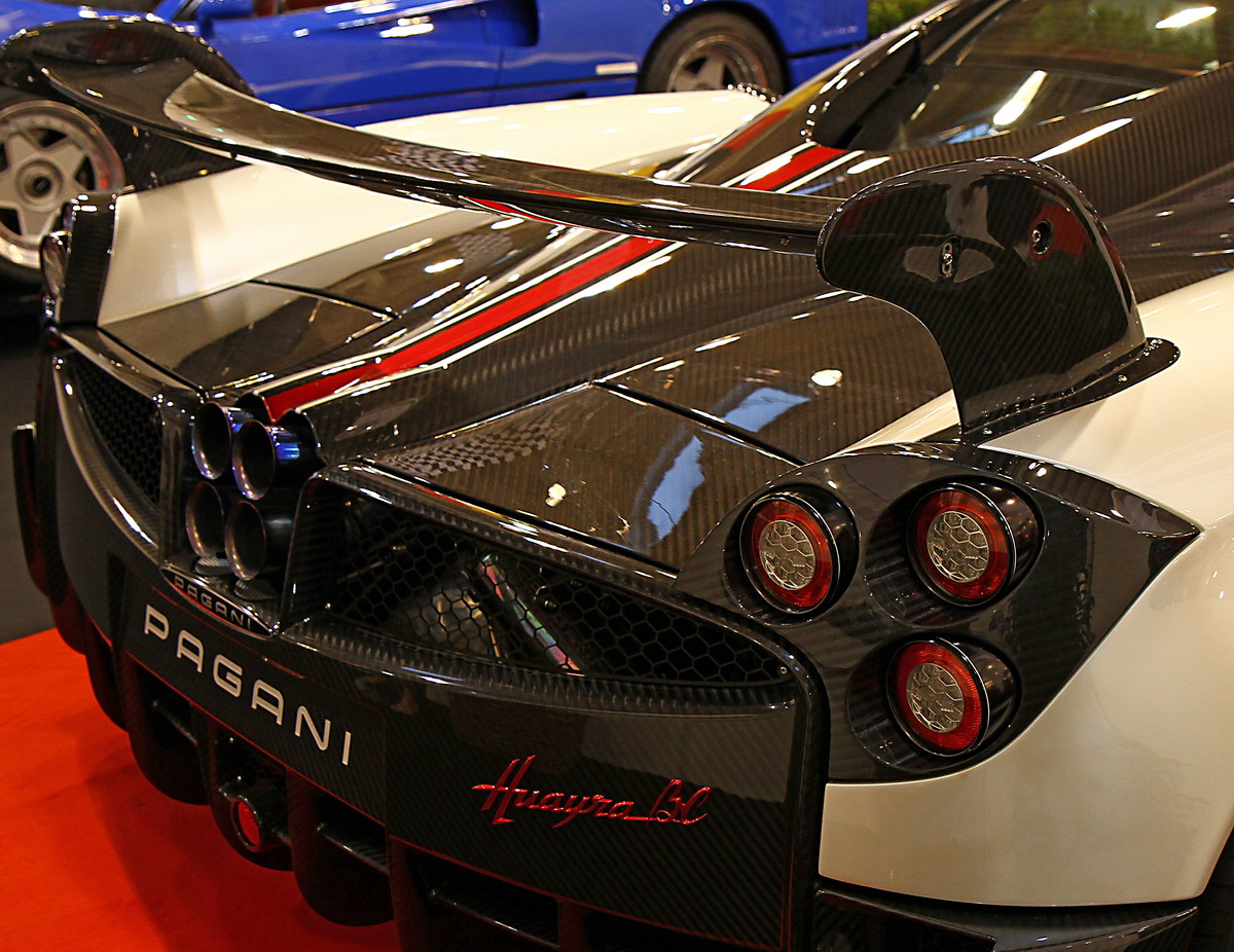 Auf der Essen Motorshow 2017 wurde auf dem Stand eines Händlers für ausgesprochen hochwertige Fahrzeuge dieser Pagani Huayra BC ausgestellt. Messebesucher mit entsprechend gefülltem Geldbeutel konnten den flachen Flitzer sogar gleich mitnehmen - ich entschied mich vorerst dieses tolle Angebot nicht anzunehmen