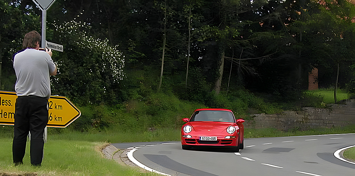 Beim Bremsentest zeigt sich, daß der neue 911er sehr schnell zum stehen kommt.