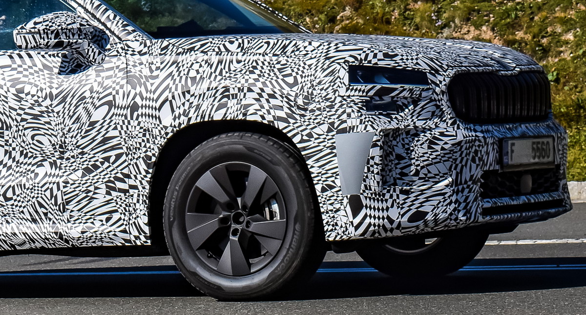 Die Front verrät, dass sich unter der Tarnung der kommende Skoda Kodiaq versteckt.