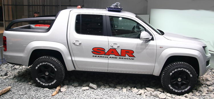Der VW Pickup SAR (Search and Rescue) ist 5,18 Meter lang und rund 1,9 Meter breit.
