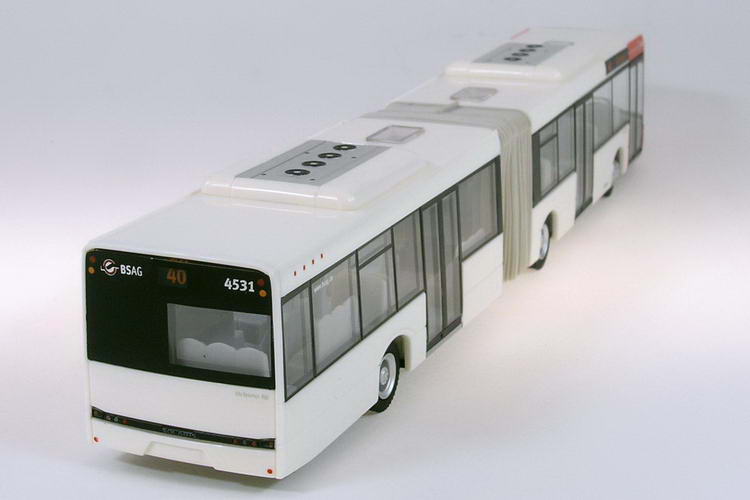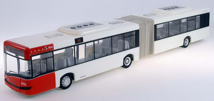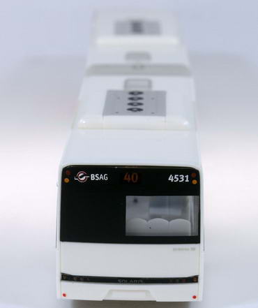 Übrigens verfügt der Urbino von VK-Modelle über ein nettes Gimmick: Der Faltenbalg ist nicht nur beweglich, das Fahrzeug kann durch ein bewegliches Gelenk auch leichte Nickbewegungen darstellen und so z.B. auf einem Bahnübergang stehen.