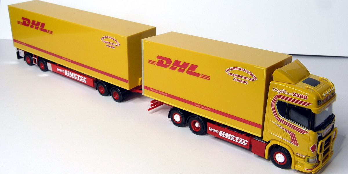 DHL setzt den ungewöhnlichen Auflieger bereits seit längerer Zeit ein und somit war das Vorbild für die Modellpremiere schnell gefunden.
