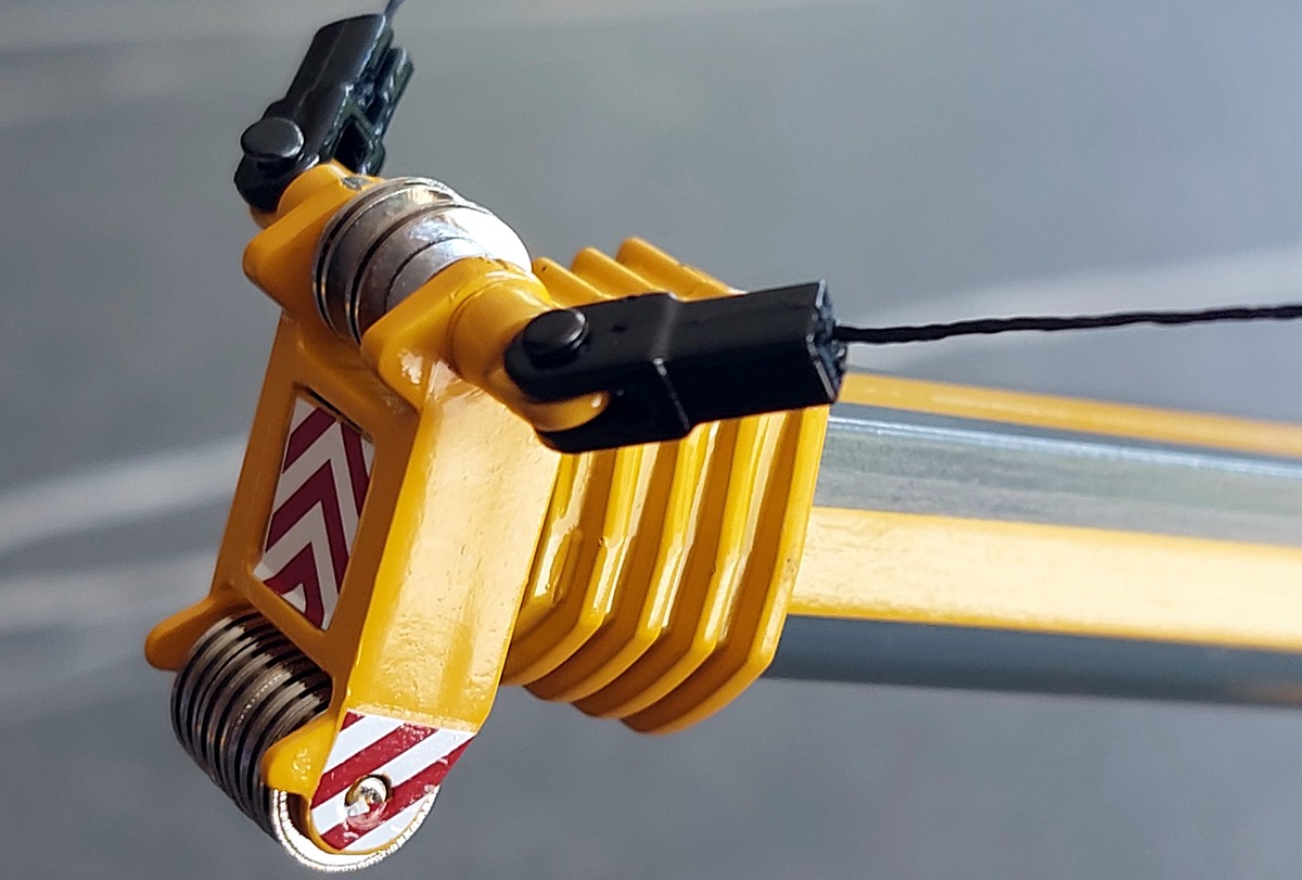 Am Auslegerende ist die Befestigung der Seile ebenfalls drehend ausgeführt und bringt die zwangsläufig etwas wuchtigen Seilhalter immer in eine realistische Position.