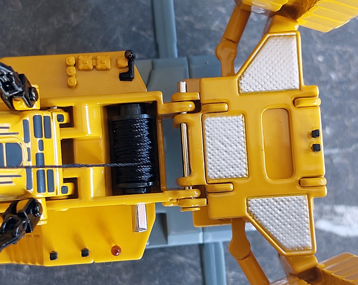 Selten zuvor verfügte ein Gussmodell über so viele Funktionen und bewegliche Teile. Etwas schwergängig, kommt gelegentlich Sorge auf, die fragilen Teile zu beschädigen - andererseits fällt der Kran damit nicht in sich zusammen.