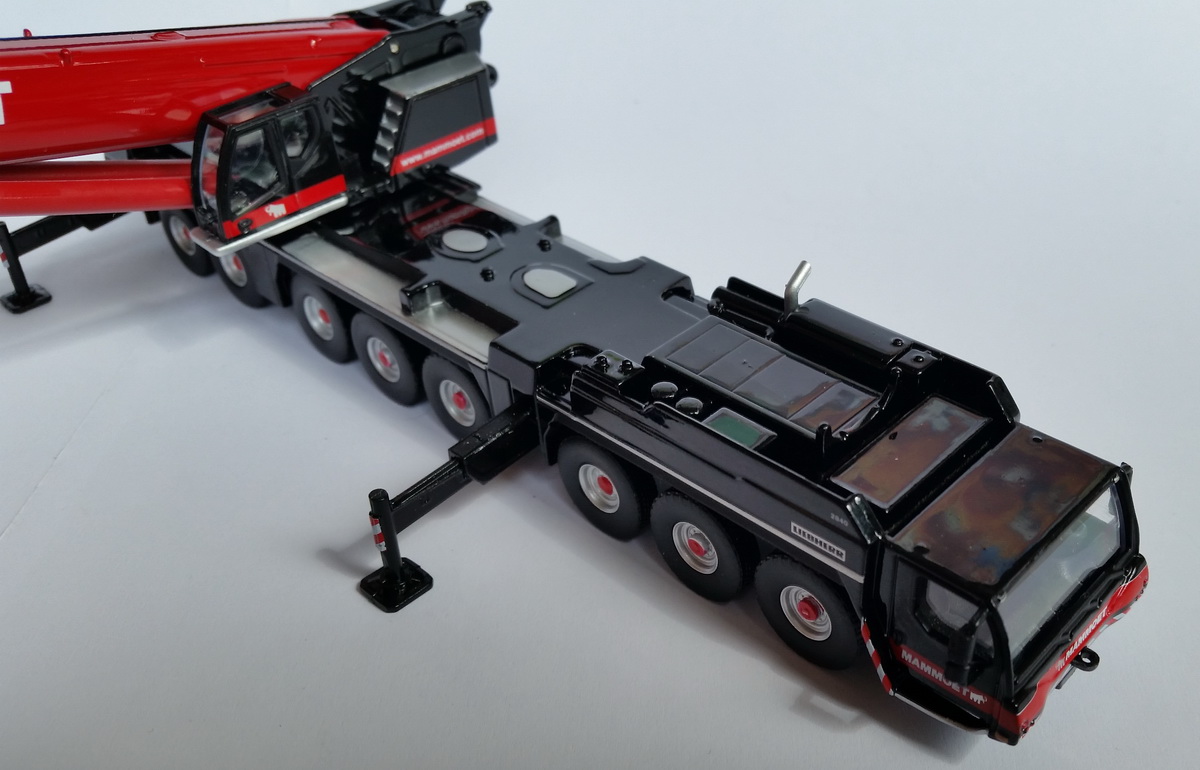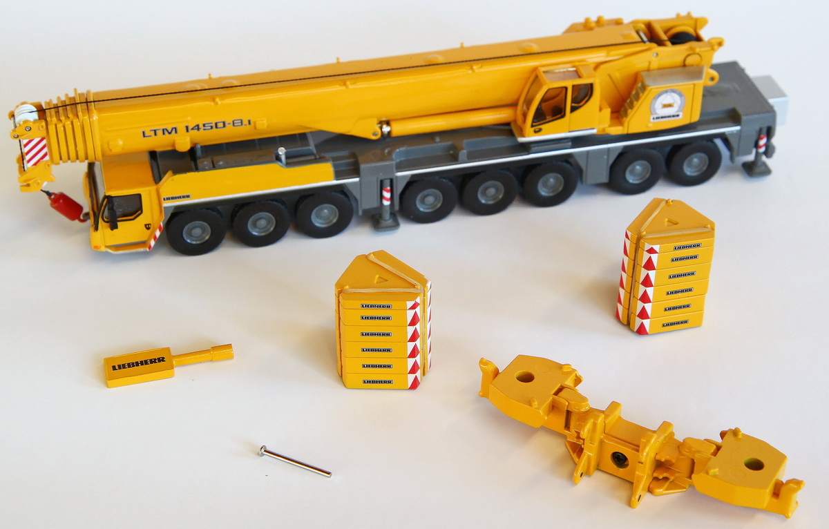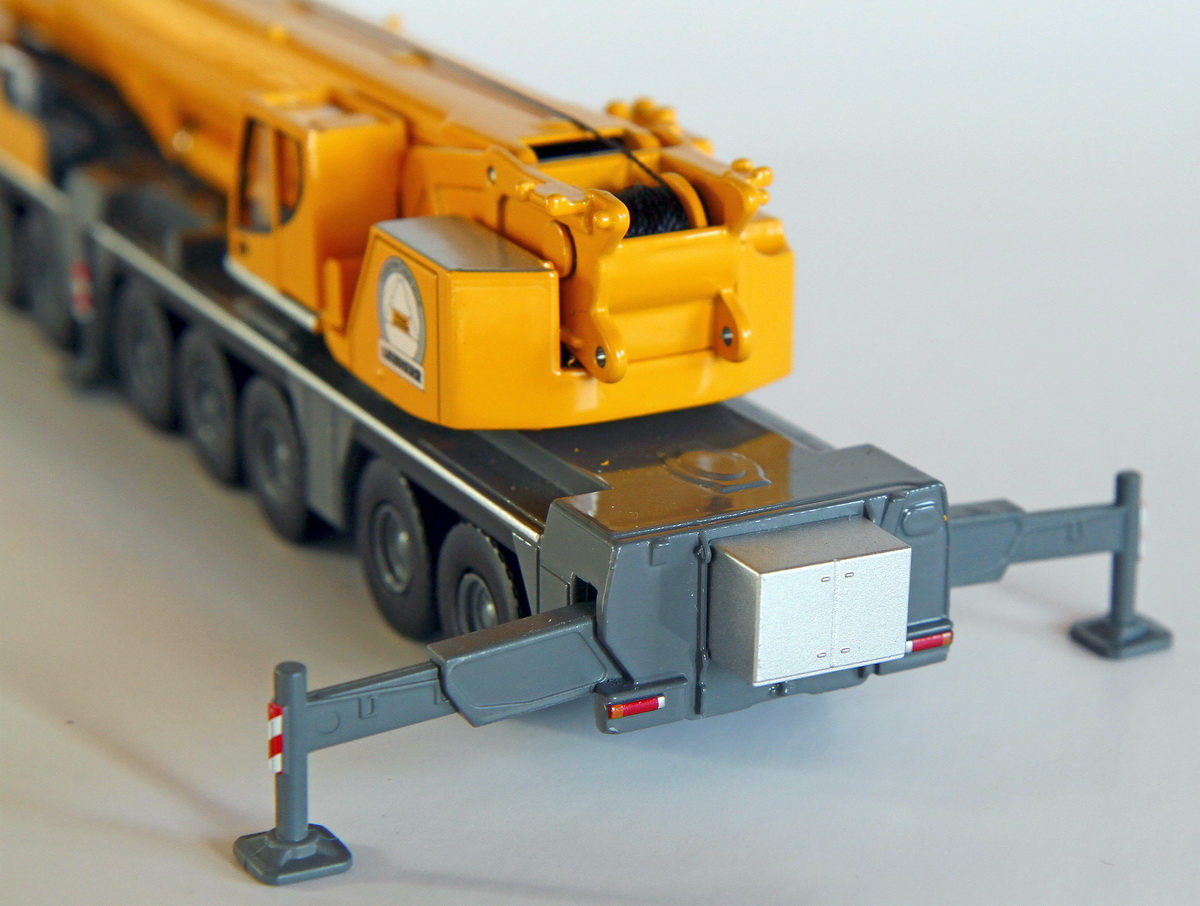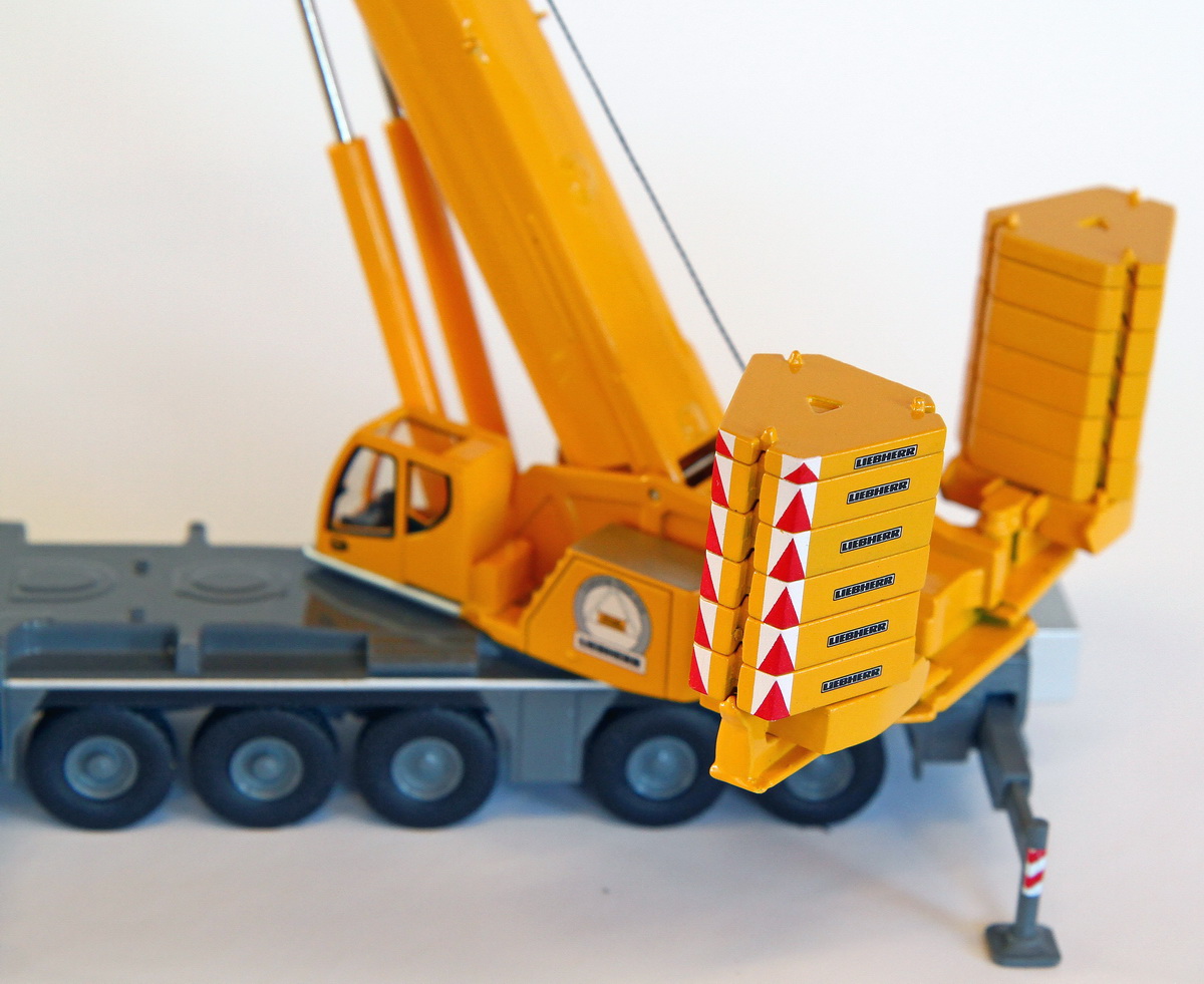 Die neue Umsetzung der Ballasteinheit begeistert mich besonders. Sowohl bei den Modellen des LTM 1250-5.1 als auch beim LTM 1400-7.1 sind die Ballasttürme fest mit dem Oberwagen verbunden. Dies führt zu einer gewaltigen Überbreite, so dass diese Modelle für den Straßenverkehr ausscheiden. .