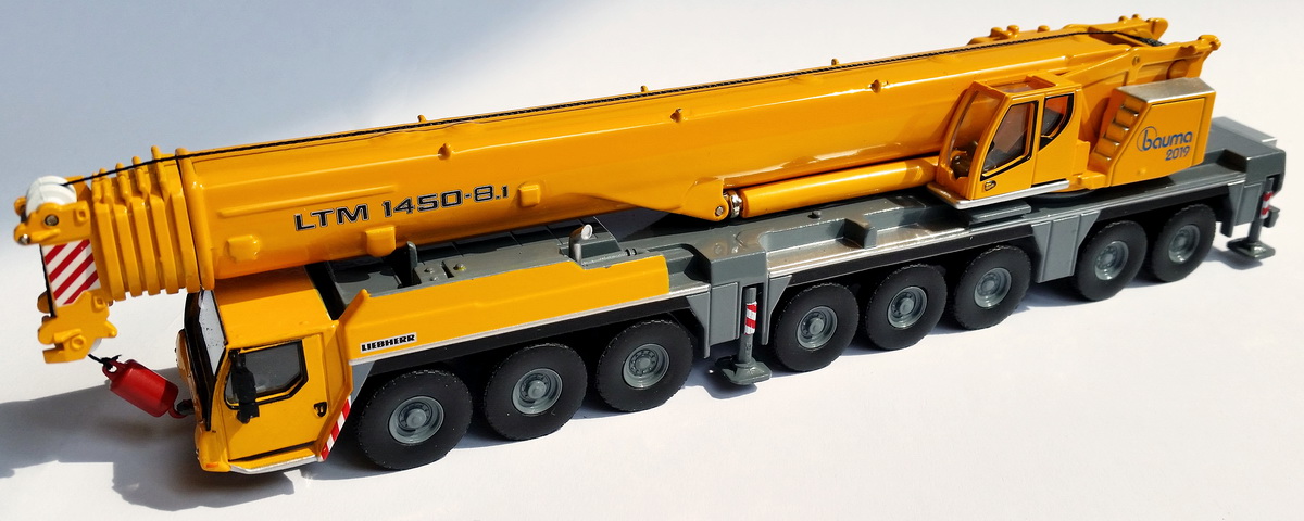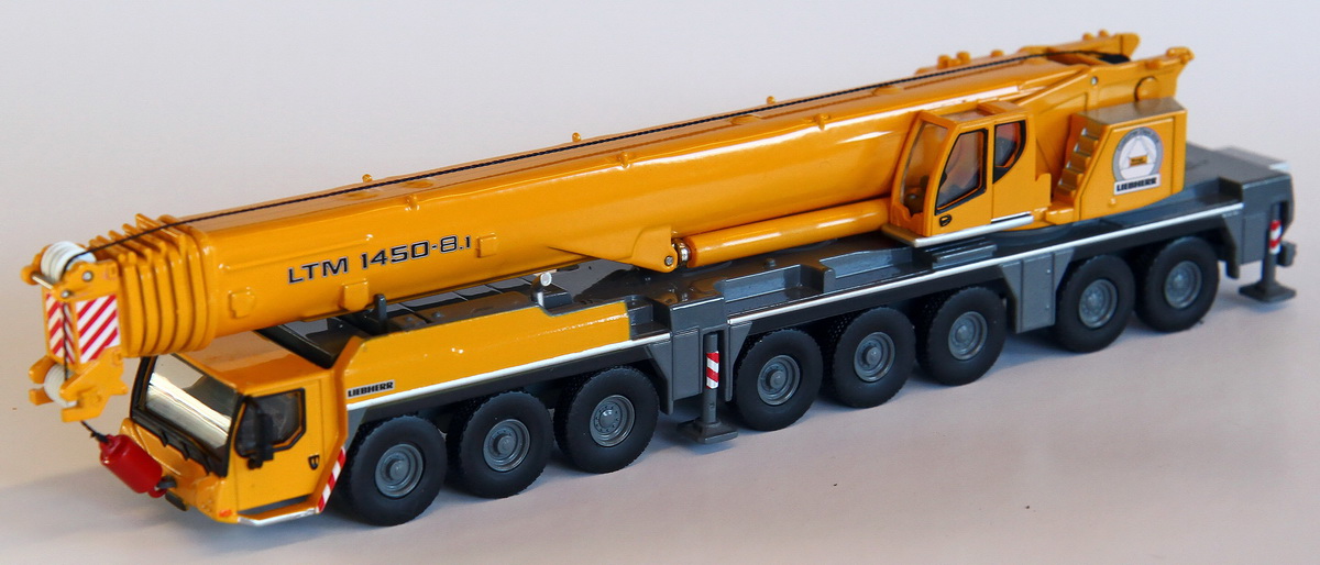 Denn der Inhalt ist eine Topneuheit, die es so nicht zu kaufen gibt. Der Liebherr LTM 1450-8.1 - ein imposanter Teleskopkran auf 8 Achsen.