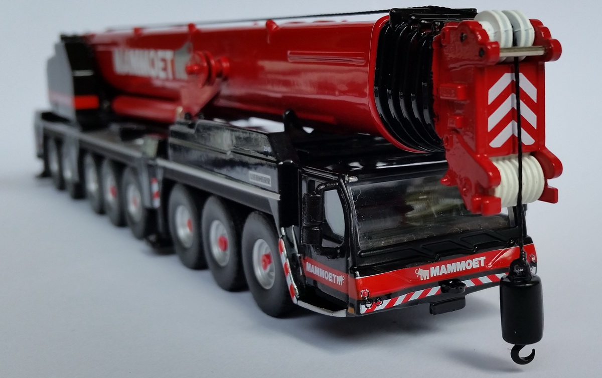 Das Vorbild verfügt über den neuen VarioBallast von Liebherr. Die beiden Ballasttürme können am Vorbild nach vorne oder hinten geschwenkt werden.