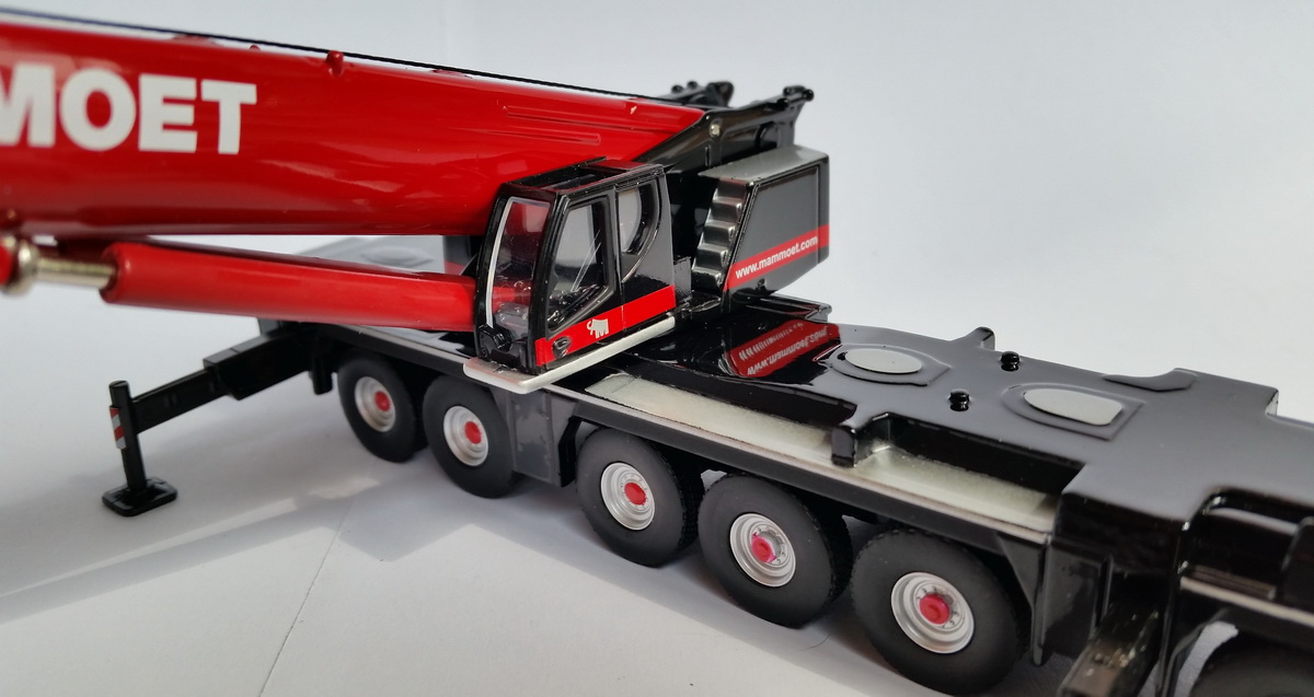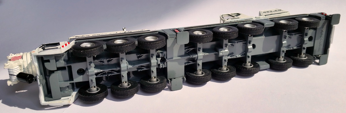Acht Achsen ergeben ein langes Fahrzeug! Beim Original erreicht der Teleskopmast eine beeindruckende Länge von 85m.