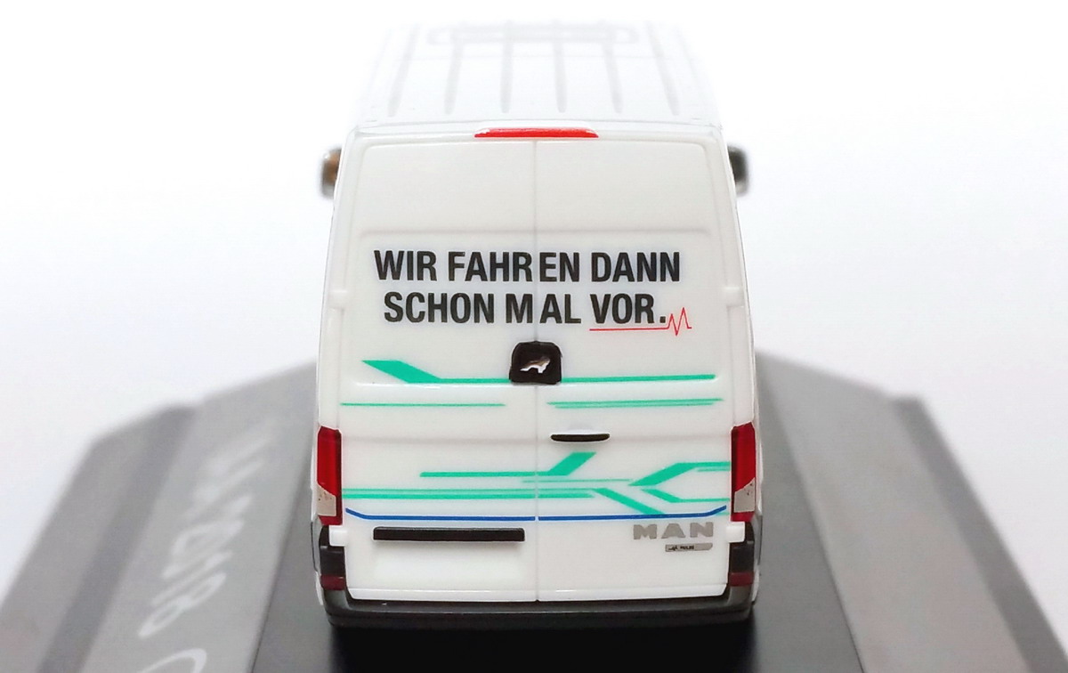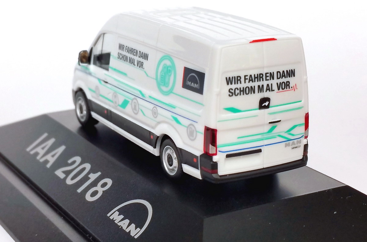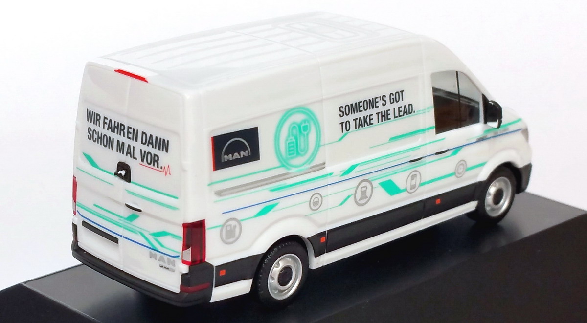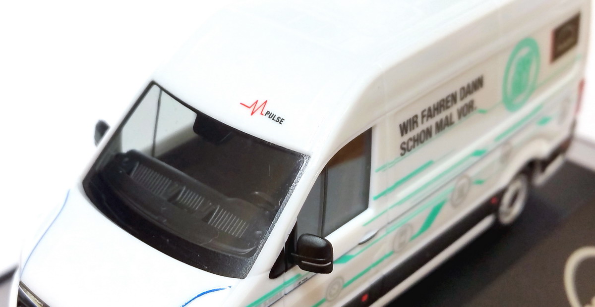 Und die spannendste Frage klären wir zum Schluss. Hier hatte ich "ein kleines bisschen Schmuh" von Herpa erwartet, denn naturgemäß benötigt ein Elektrofahrzeug keine klassische Auspuffanlage.