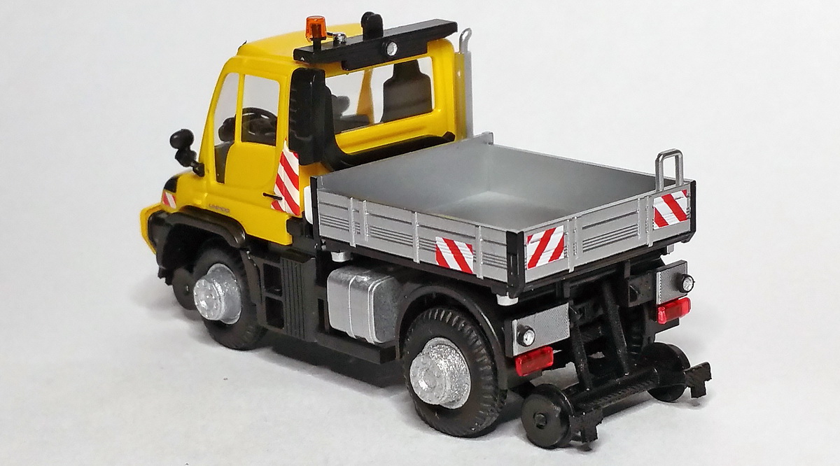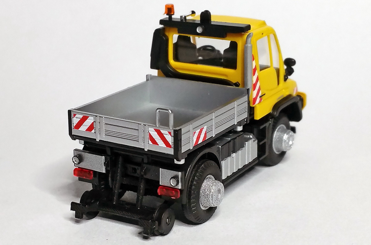 Der höhere Reibwert von Gummi auf Stahl ermöglicht dem Vorbild eine enorme Zugkraft von 1.000 Tonnen! Die Höchstgeschwindigkeit auf der Schiene beträgt stolze 50 km/h, auf der Straße sind die üblichen 90 km/h machbar.