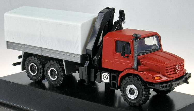 Der bewegliche Ladekran stammt von Herpa. Neben den Werbemodellen, die bei den Mercedes Benz-Filialen erhältlich sind, hält der Zetros nun auch Einzug im Modellsortiment von Herpa.