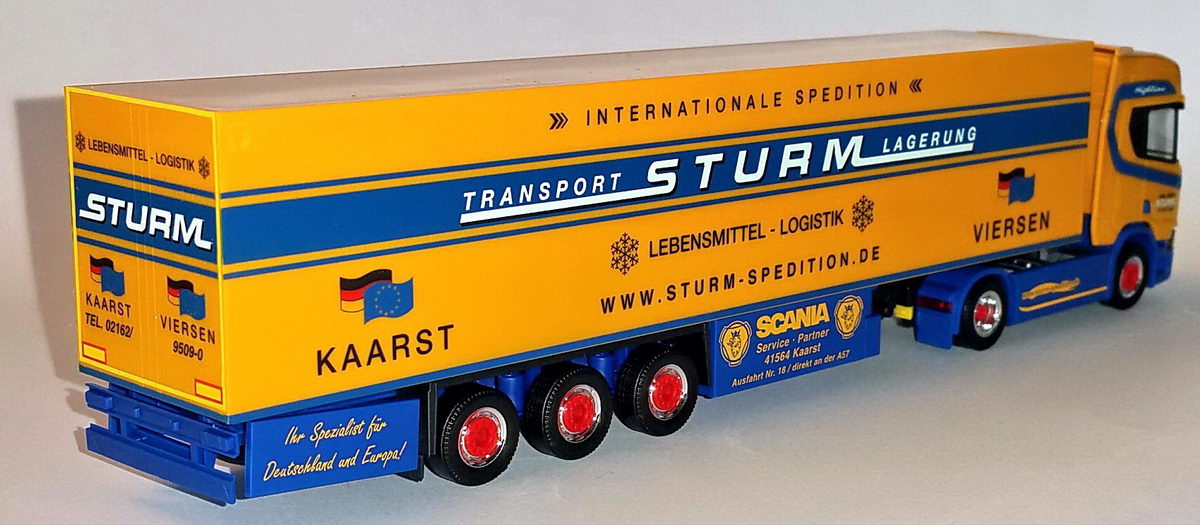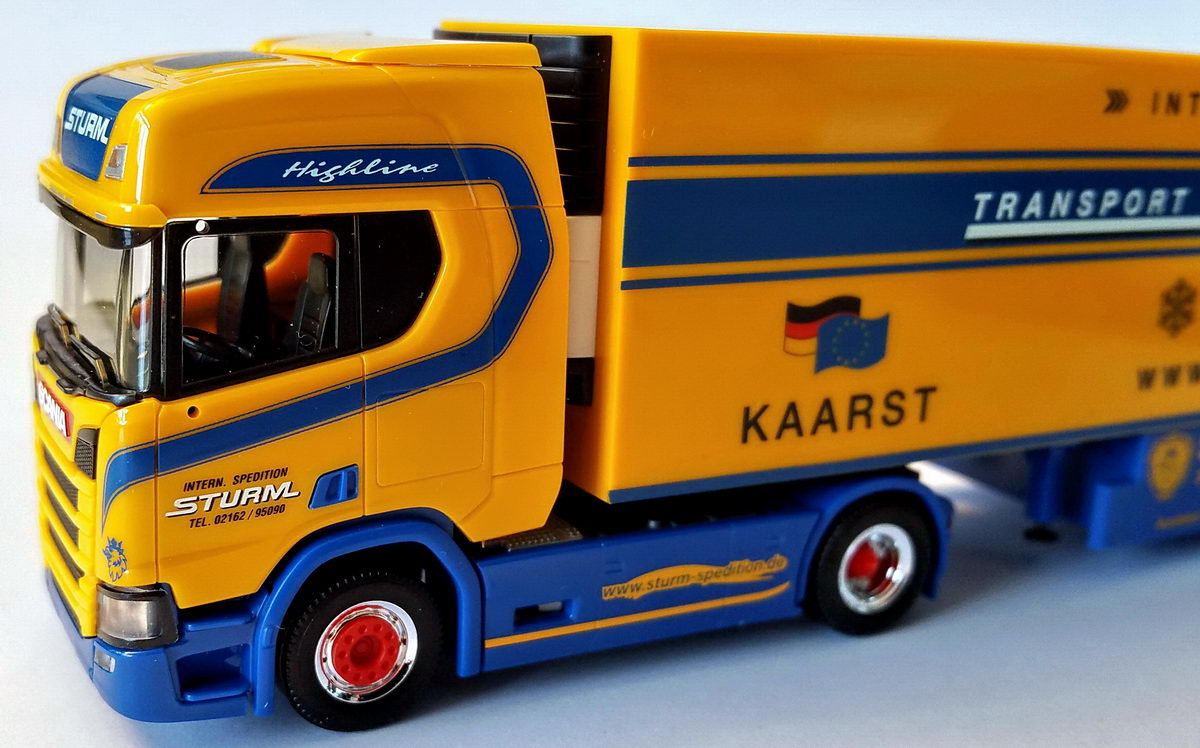 Mich hat es sehr gefreut, dass die Spedition Sturm recht frühzeitig mit einem aktuellen Scania im H0-Maßstab bedacht wurde.