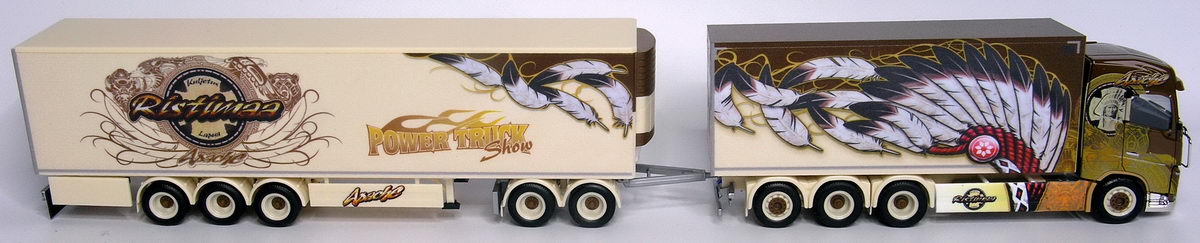 Neben der Eigenwerbung fährt der lange Anhänger Werbung für die Power Truck Show - einem gigantischen Lkw-Festival. Ob das für die Prämierung hilfreich sein kann?