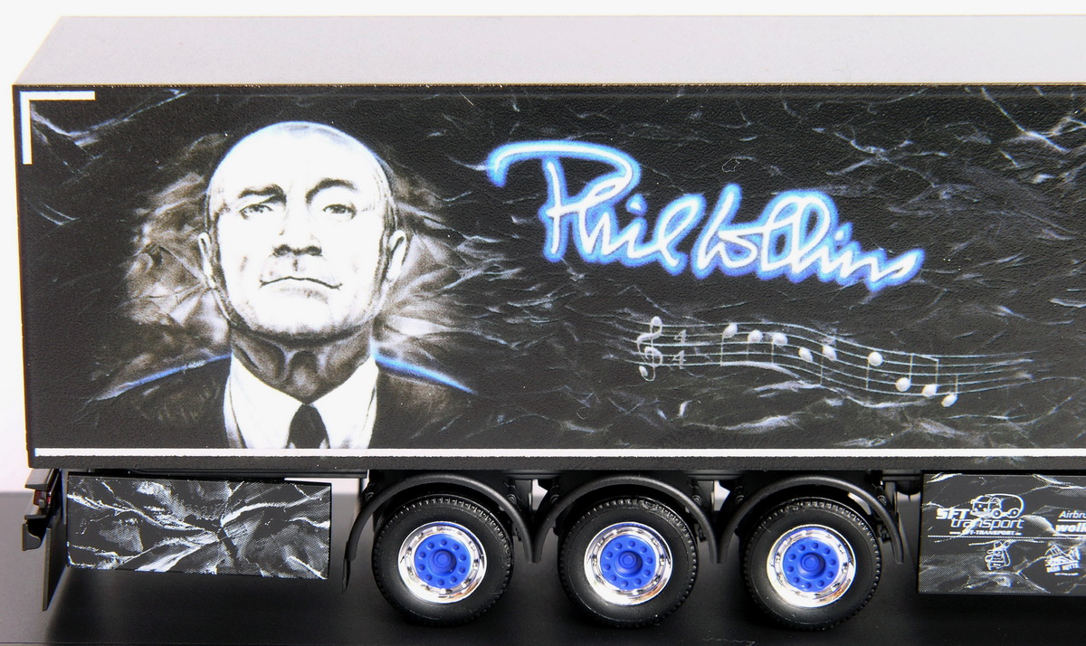 Mit hohem drucktechnischen Aufwand hat Herpa das neueste Kunstwerk mit Phil Collins-Motiven in ein Modell übertragen.