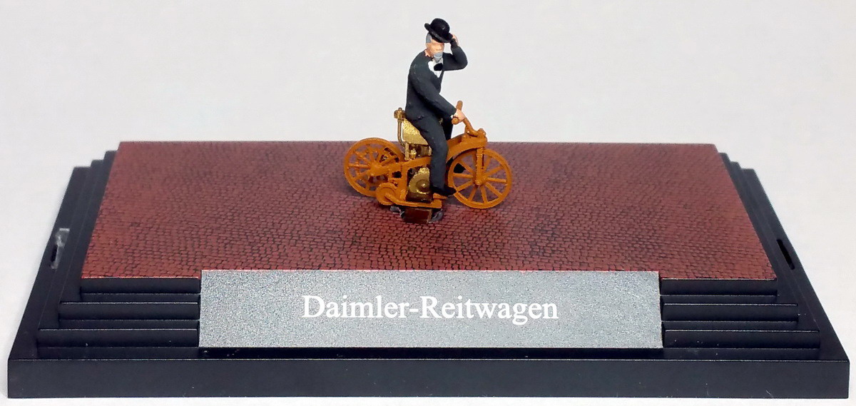 In Zusammenarbeit mit Wilhelm Maybach* entwickelte Gottlieb Daimler zuerst einen kompakten Motor, dessen späteren Evolutionsstufen in den Reitwagen mündeten.