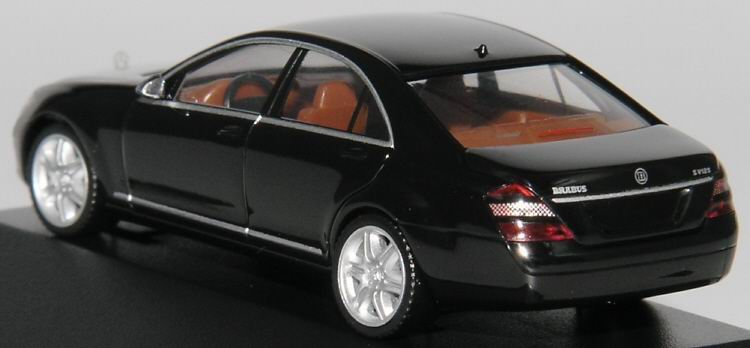 Mußte der Brabus SLK 6.1 wie viele weitere Brabus-Nachbildungen noch ohne jede Änderung der Karosserie auskommen, griff Herpa diesmal zu einem recht gelungenen Kunstgriff: Die bei der S-Klasse dreieckig angelegten Nebelscheinwerfer wurden nicht verchromt sondern stattdessen mit einem runden Nebellicht bedruckt. Für die eigentlich notwendigen zwei reichte die unförmige Fläche nicht aus.