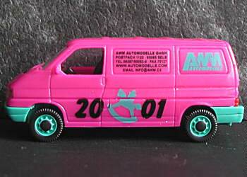 Neben dem AWM-Logo in Türkis findet man die Jahreszahl 2001, unterbrochten durch das Logo der Spielwarenmesse Nürnberg (dem Schaukel- pferd) und die Anschrift des Herstellers auf beiden Seiten des Modells.