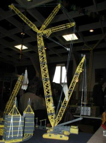 Der filigrane Oberwagen mit der beweglichen Kabine, den Kontergewichten und den Winden.