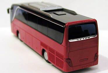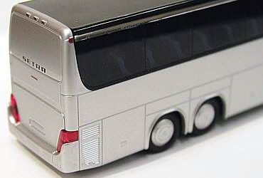 Die überhängende Stoßstange ist eine der auffälligsten Änderungen. Der Bus besitzt nur noch eine Tür. An Front und Heck befinden sich an der Dachkante diverse Lämpchen.