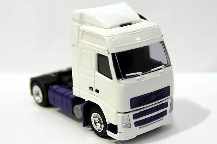 Die später chromgeprägten Teile wie das Volvo-Symbol im Kühlergrill und andere Teile sind hier noch nicht verchromt, denn es handelt sich bei diesen beiden Modellen um die ersten Handmodelle vom FH.