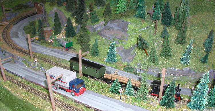 Die vierte der Szenen der Fa. Breidenbach hatte die Schweiz zum Thema. Ein kleiner Zug und ein MAN von A. Talke sind hier auf Berg- und Talfahrt.