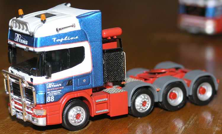 Auch das Modell der vierachsigen Scania- Zugmaschine bildet das Vorbild der Fa. Peters perfekt nach.