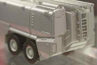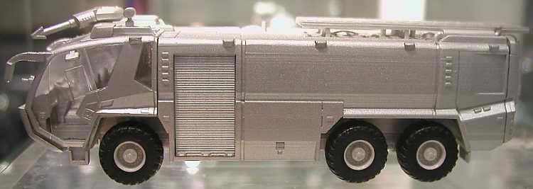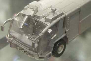 Das Handmuster des Flugfeldlöschfahrzeuges Rosenbauer Panther 6x6 verspricht schon viel. Das Vorbild erreicht mit einem Einsatzgewicht von 36 Tonnen und 12.000 Litern Löschmittel eine Geschwindigkeit von 120 KM/h.