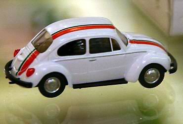 Dieser VW Käfer mit den zwei Dekostreifen ist ebenfalls ein limitiertes Messemodell. Die Form für dieses Modell wurde von grundauf neu aufgebaut.