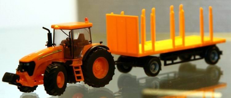 John Deere Traktor 7920 mit Rungenhänger, in Kommunaldesign.