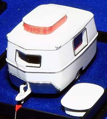 Ebenso wie auch der Eriba Puck Wohnwagen, Baujahr 1964.(Art.-Nr. 87053)Das Modell besitzt 4 Fenster und ein ovales Hubdach, welches durch Einsteckteile ent- weder offen oder geschlossen dargestellt werden kann.