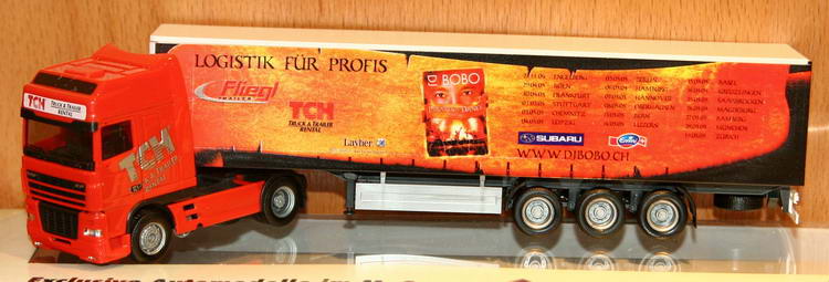 Der schwarze Auflieger im Humbaur BigOne Basic-Design war in vier Variationen verfügbar. Neben diesem DAF XF105 standen...