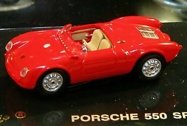 Oben links: Porsche 550 Spyder,Baujahr 1953, silber mit Startnummer 88,(Art.-Nr. 98 38467)Oben rechts: Porsche 550 Spyder,Baujahr 1953, rot, (Art.-Nr. 98 338567)Links: Porsche 356 B, Baujahr 1960,(Art.-Nr. 98 38866)