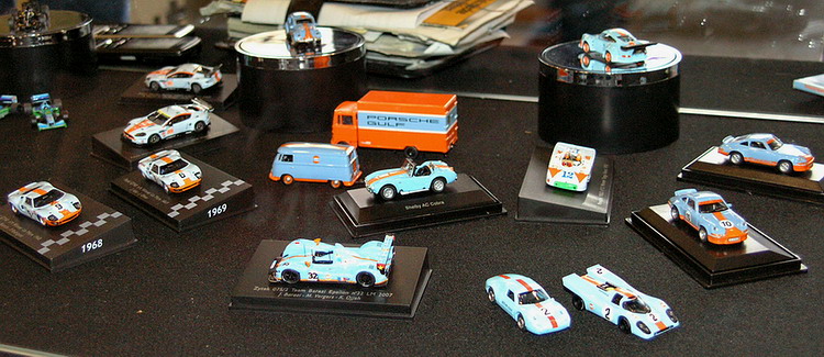 Christian Dettmann zeigte als Gastaussteller mit der IG Rennsport eine Palette verschiedener Rennfahrzeuge im bekannten Gulf-Design.