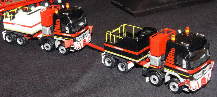 Außerdem gab es eine große Mammoet-Flotte zu sehen! Diese beiden Mercedes Benz Actros sind in Australien unterwegs und haben unterschiedlich lackierte Ballastpritschen aufgesattelt.