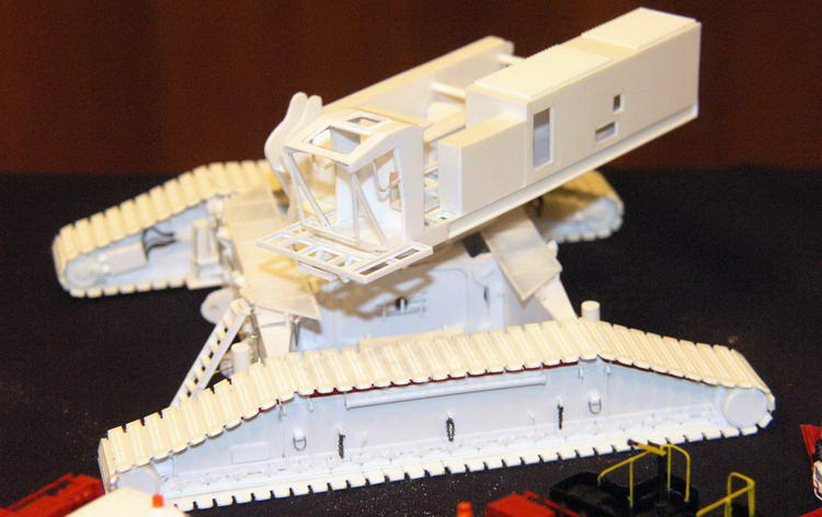 Rohbau des Raupenkrans Liebherr LR 11350. Jedes Teil lässt sich, wie im Vorbild, demontieren und einzeln verladen.