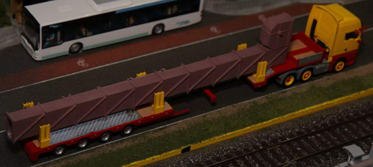 Gespann zum Transport besonders langer Teile, z. B. Stahlträger.