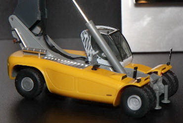 Ein weitere Variante ist bereits angekündigt: Das Modell in leuchtendem Rot und dem Design der Krebs Unternehmensgruppe wird mit 3 Containern ausgeliefert. Kleine Magnete sorgen für eine sichere Verbindung zwischen den Stahlbehältern und dem Reachstacker.