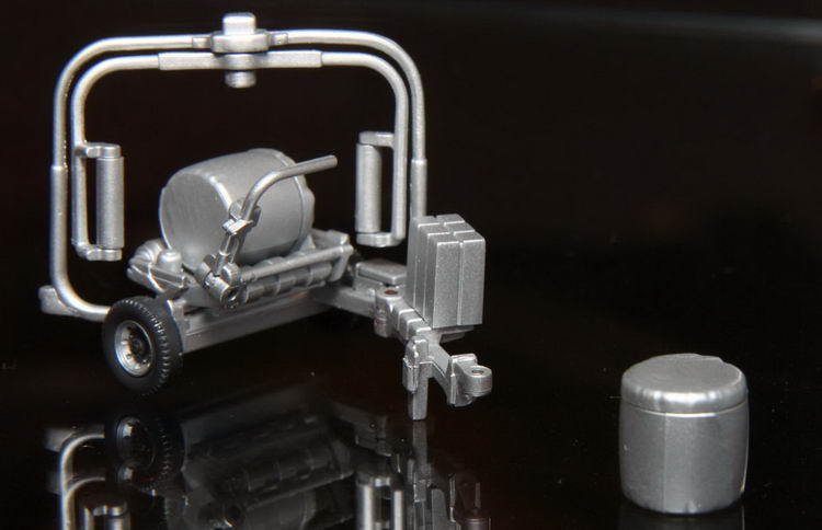 Der Kuhn Ballenwickler RW 1800 verfügt über drehbare Satelliten und einen beweglichen Wickeltisch, auf dem die Ballen entsprechend platziert werden können. Dem verblüffenden Modell liegen zwei verpackte Ballen bei.