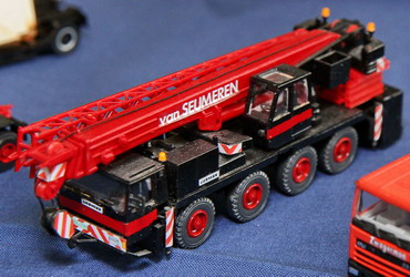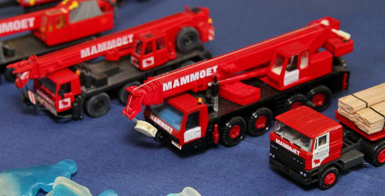 Mammoet-Fahrzeuge in der alten Farbgebung sieht man immer seltener auf den Messe- tischen. Da ist es um so besser, dass Aaldert Koster mit seinen Modellen an diese Epoche erinnert. Passend dazu gibt es auch die Van Seumeren-Geräte.