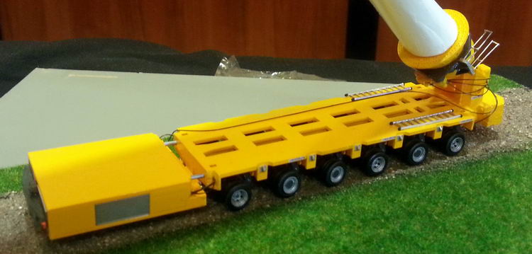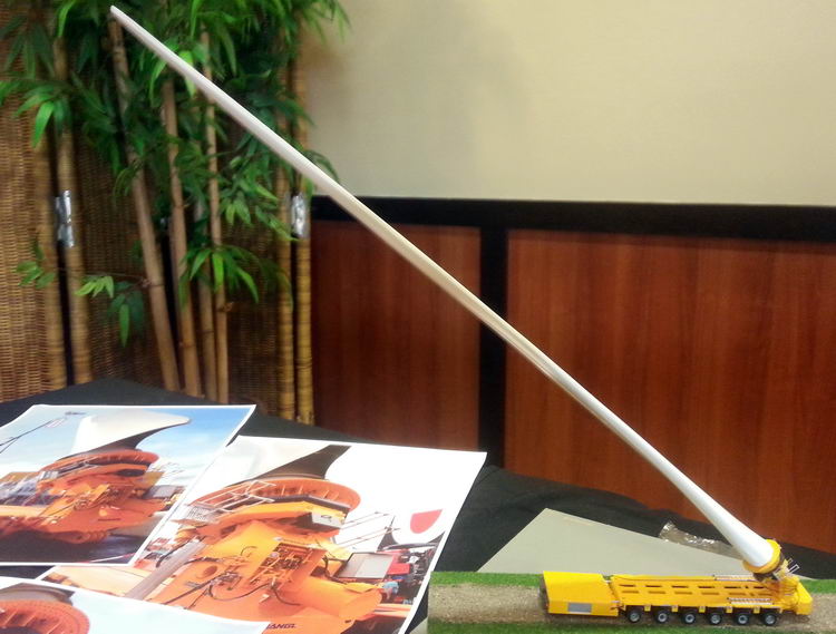 Die gigantischen Ausmaße der Flügeltransporte aktueller WKA ließen sich hier bestaunen.