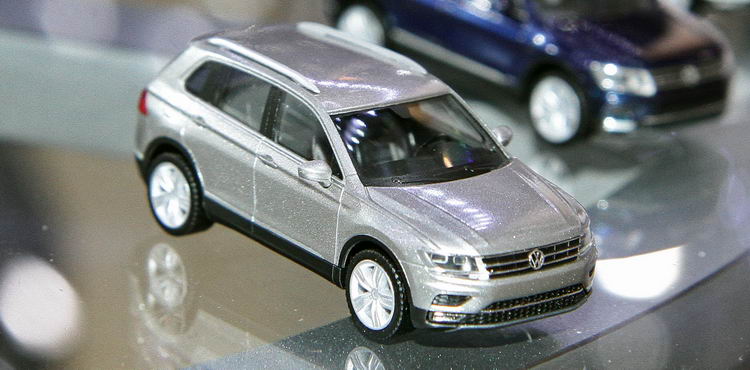 Der von Grund auf überarbeitete und deutlich gestraffte Tiguan von Volkswagen ist (leider) die einzige echte käufliche H0-Formneuheit der IAA 2015. Das Wolfsburger SUV erscheint zum Preis von 17,90 € in drei Farben: