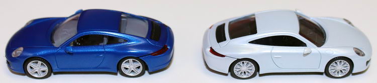 Es handelt sich um den aktuellen Porsche 911, intern "991 II" genannt. Das Vorbild war gleichzeitig in den Messehallen zu bestaunen. Ein Beleg für die Aktualität. Es handelt sich hier um Handmuster des Porsche 911 Carrera und 911 Carrera S. Damit war kaum zu rechnen, stammt doch der letzte Zuffenhausener von Herpa aus dem Jahr 2002.